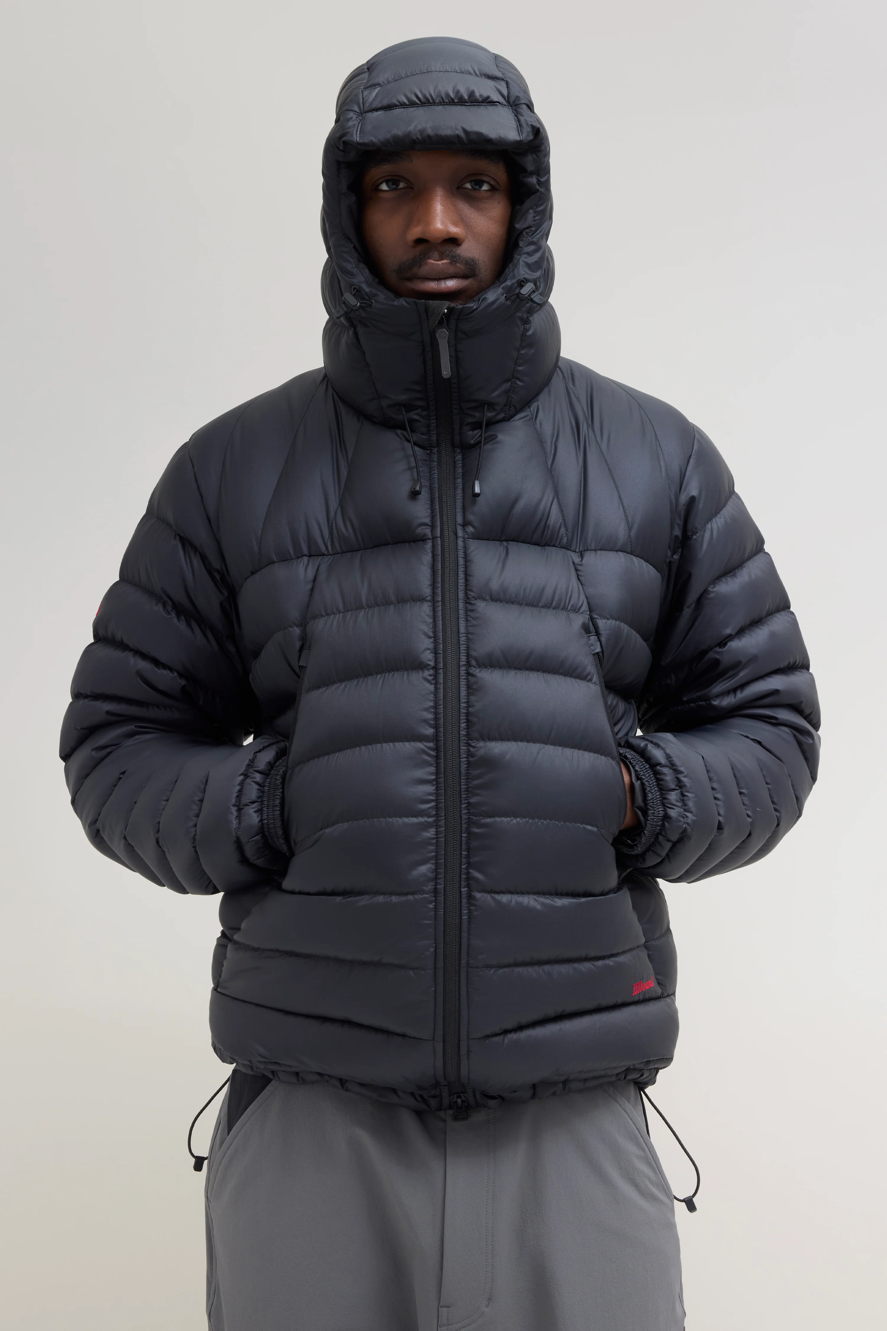 Designed with inspiration from vintage expedition gear and sleeping bag construction, this down jacket reinterprets technical warmth for everyday urban wear.