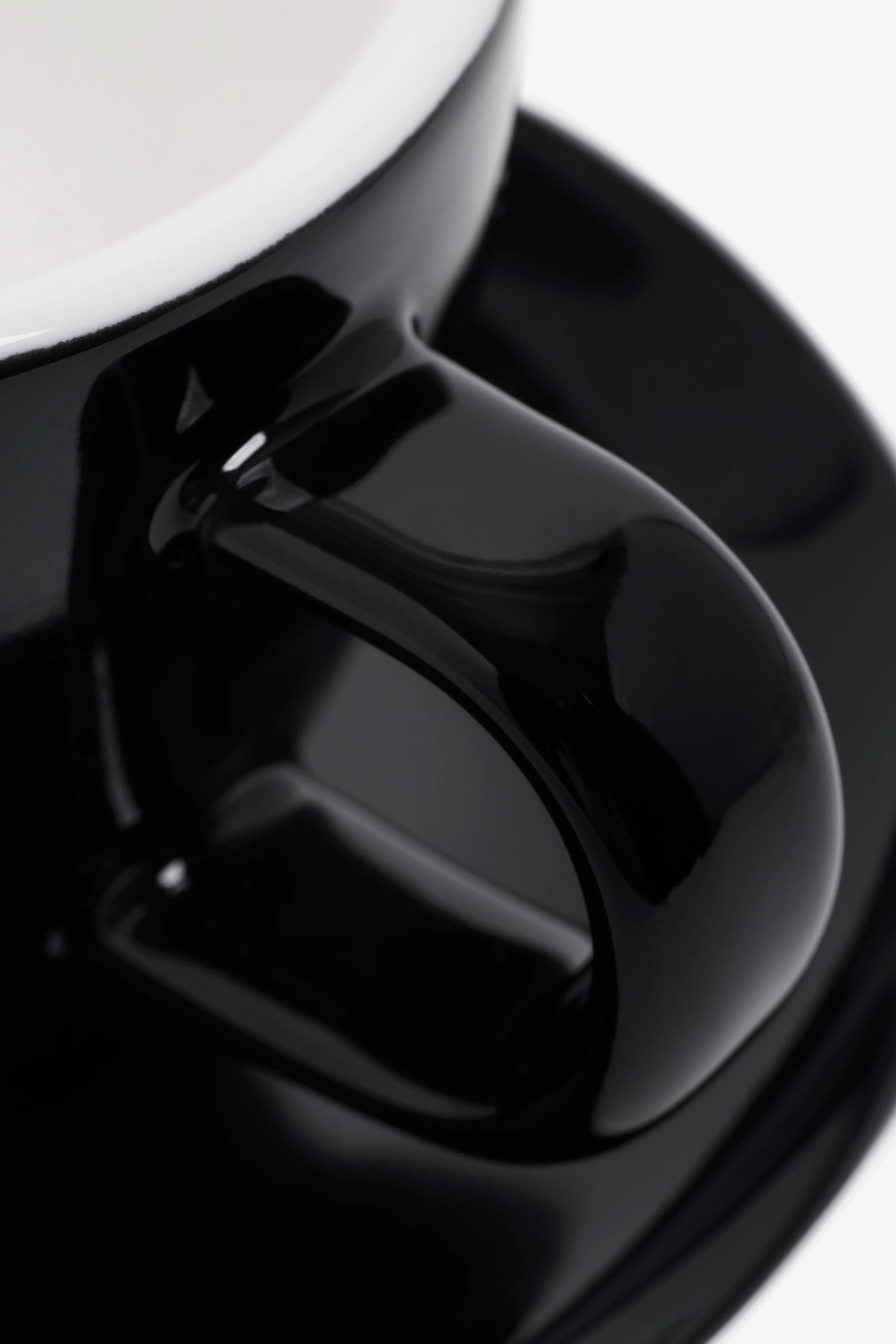 An everyday drinking cup with a standard format. Comes with a matching saucer. Designed for coffee, tea, or whatever you’re into.