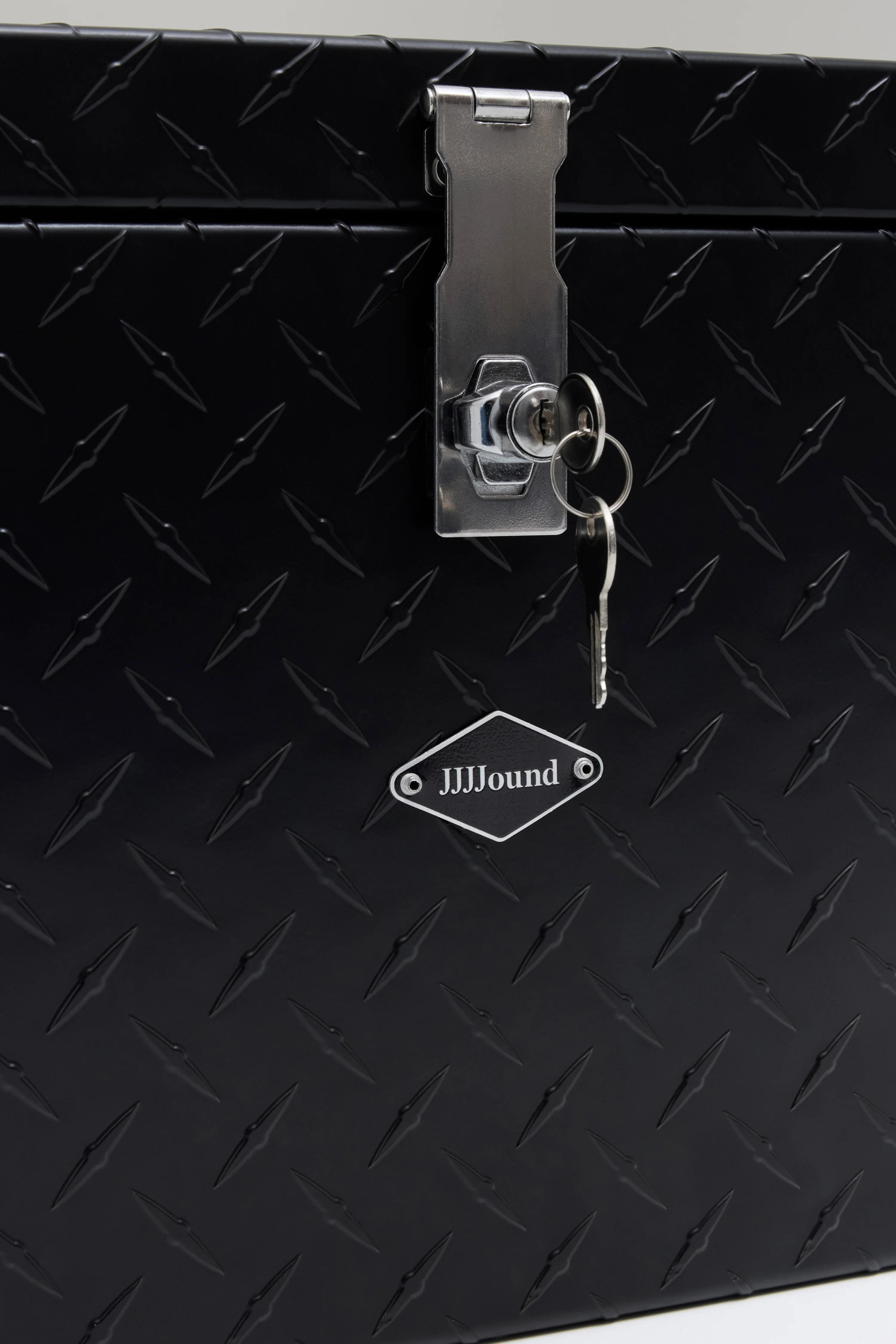 Constructed from 2.6 mm thick aluminum, the JJJJound Toolbox references industrial truck storage while adapting its proportions for smaller, everyday environments.